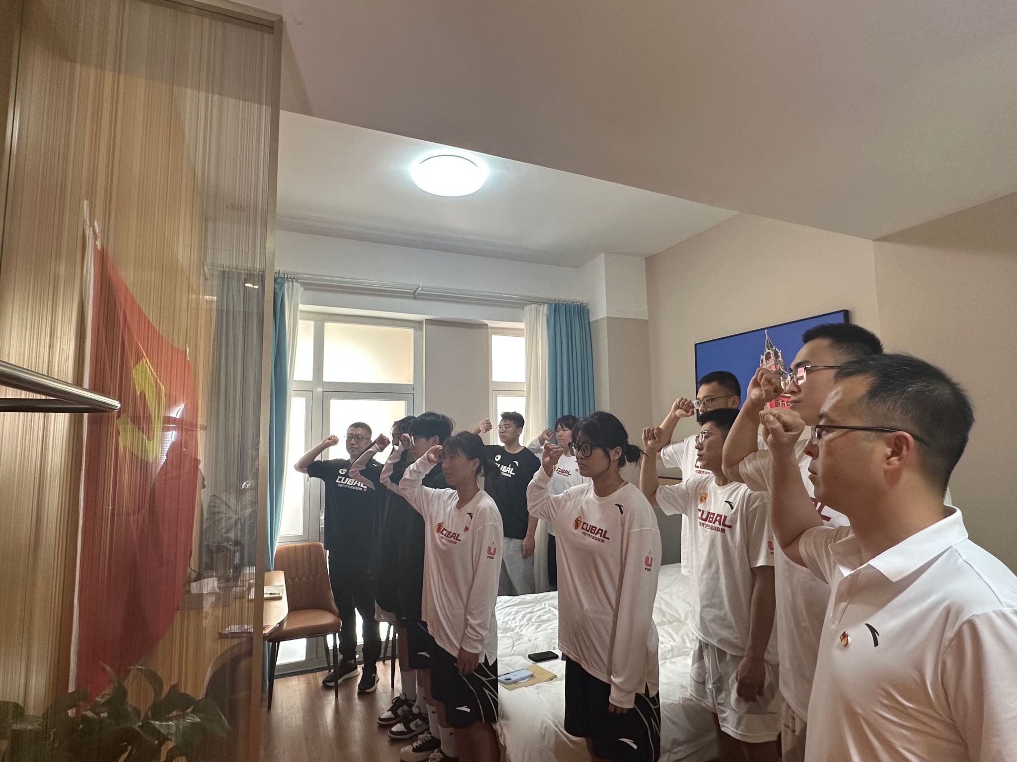 4月23日上午,在郑州西亚斯学院,CUBAL西北赛区鏖战正酣,比赛间隙,在我校高水平篮球队宿舍,组织了一次以“学党规党纪,强赛风赛纪”为主题的党日活动,篮球队所有党员教练、队员和积极分子代表参加,7790CNM必发集团党委书记李群生主持。