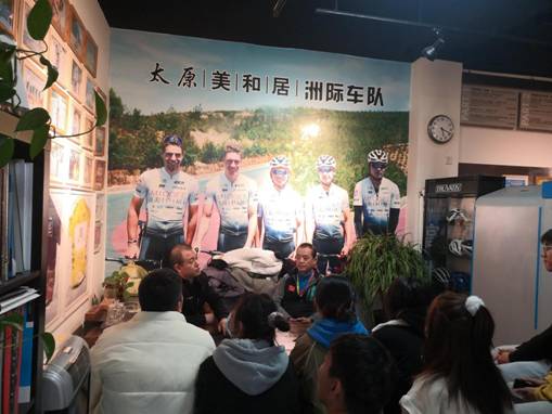 示范教学结束后,宋经理与同学们进行座谈交流,一起讲述了山西自行车运动以及太原美和居洲际车队在国际比赛中的经历以及取得的优异成绩。同学们不禁赞叹:“咱们山西的自行车运动底蕴如此深厚啊!”