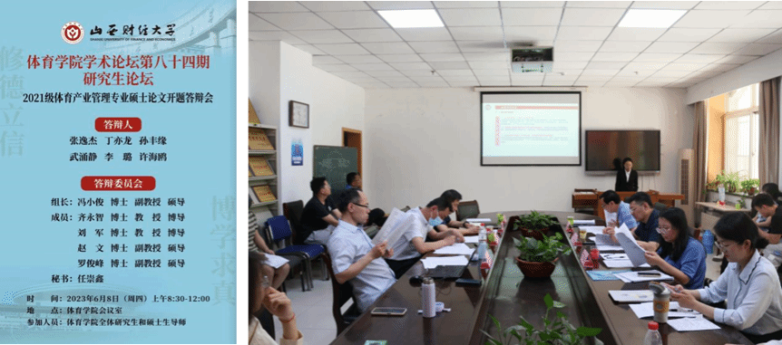 为切实加强研究生培养过程管理,做好研究生学位论文指导工作,我院根据本学期研究生培养计划安排,于6月8日上午,在学院会议室举行了我院学术论坛第八十四期暨我院2021级硕士学位论文开题答辩报告会。本次开题答辩邀请了我校公共管理学院副院长冯小俊副教授、工商管理学院齐永智教授、国际贸易学院刘军教授、管理科学与工程学院赵文副教授、公共管理学院罗俊峰副教授5位专家担任答辩评委。答辩会由我院副院长高进主持,学院全体研究生导师、部分任课教师旁听交流,全体研究生到场观摩学习。