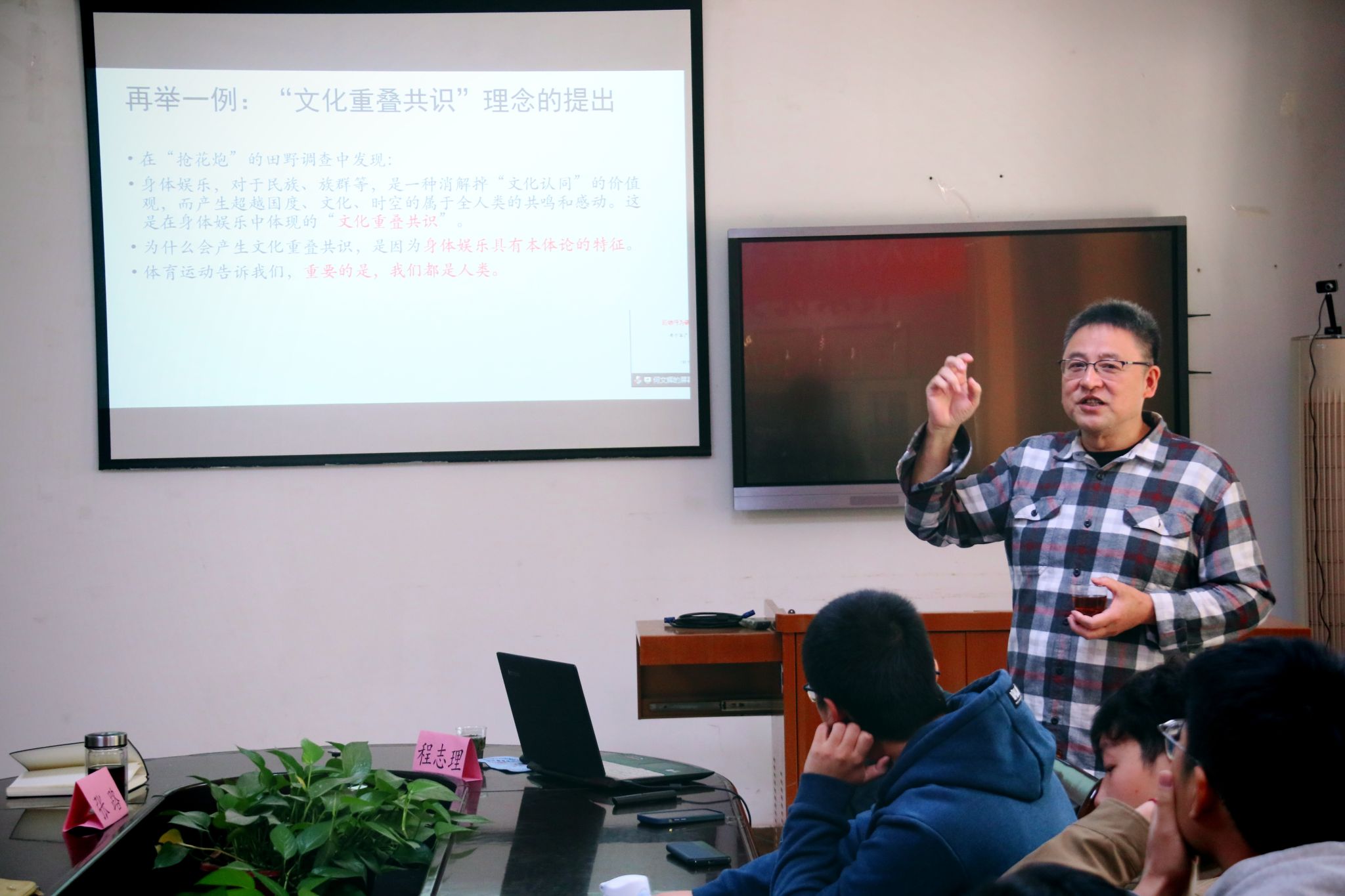 讲座伊始,程志理先生表示,截至目前体育类演讲没有学术语言共同体,体育学片面的解释导致体育学研究对象的模糊表达。就此,他提出了“体育学的研究对象究竟应该是什么?”如何理解“对象”与“现象”?程志理先生以体育学学科建设发展入题,介绍了体育学科的发展困境,以及自己对主流体育学研究范式的反思,系统阐释了体育学科的实践性知识特性,在此基础上提出并阐释了有温度、有感情的运动行为叙事的方法学范式及意义。通过丰富的案例,深入浅出地阐释了体育的“体认”范式。他认为,体育学的学科建设,对研究对象以及基于对研究对象认识的方法学建设,是至关重要的基本论题。体育学在“体认范式”的本体论理路引领下,开启了行为学转向,由研究“人体”的“生物体育学”定位,开始向运动行为叙事的“行为体育学”迈进。随后,程先生结合自身开展的体育消费行为以及“文化重叠共识”理念两例运动行为叙事的经验帮助大家更好地理解“体认范式”的本体论,并在报告结束后与现场师生进行了热烈的交流互动。程教授以徐梦桃和苏炳添为例用通俗易懂的语言进一步阐明了何为身体感,向大家释明了运动行为研究如何寻找真实性和数据分析的运动行为志互证。