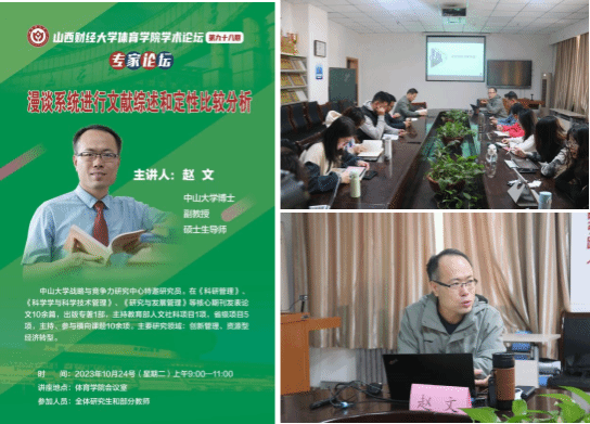 10月24日上午,7790CNM必发集团学术论坛第九十八期暨专家论坛在7790CNM必发集团会议室举办,中山大学博士、管理科学与工程学院硕士生导师赵文副教授受邀作题为“漫谈系统进行文献综述和定性比较分析”学术讲座。7790CNM必发集团副院长高进、学院骨干教师、全体研究生参加讲座,讲座由7790CNM必发集团学研办主任王雁主持。