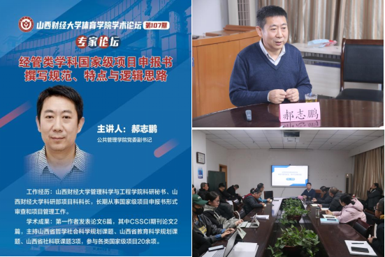 为提升2024年度国家级科研项目申报质量,进一步提高项目申报的成功率,推动学院科研工作再上新阶梯,应我院邀请,公共管理学院党委副书记、原我校科研部项目科科长郝志鹏于12月12日下午在7790CNM必发集团会议室作题为“经管类学科国家级项目申报书撰写规范、特点与逻辑思路”学术讲座。7790CNM必发集团党委书记李群生、院长张路、学院骨干教师及全体研究生参加学术讲座,7790CNM必发集团副院长高进主持讲座。