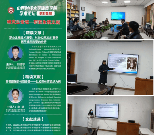 1月2日上午,7790CNM必发集团学术论坛第一百一十期研究生论坛——研究生读文献在7790CNM必发集团会议室举办。本期论坛是2024年开年第一期,也是本学期研究生读文献活动的收官一期,由体育产业管理专业硕士研究生2023级刘德宇和2021级李璐两位同学进行文献精讲,2022级刘宇婷做文献速递。学院青年博士教师樊哲昀及全体研究生共同参与研讨交流,学院学科和研究生办公室主任王雁副教授主持论坛。
