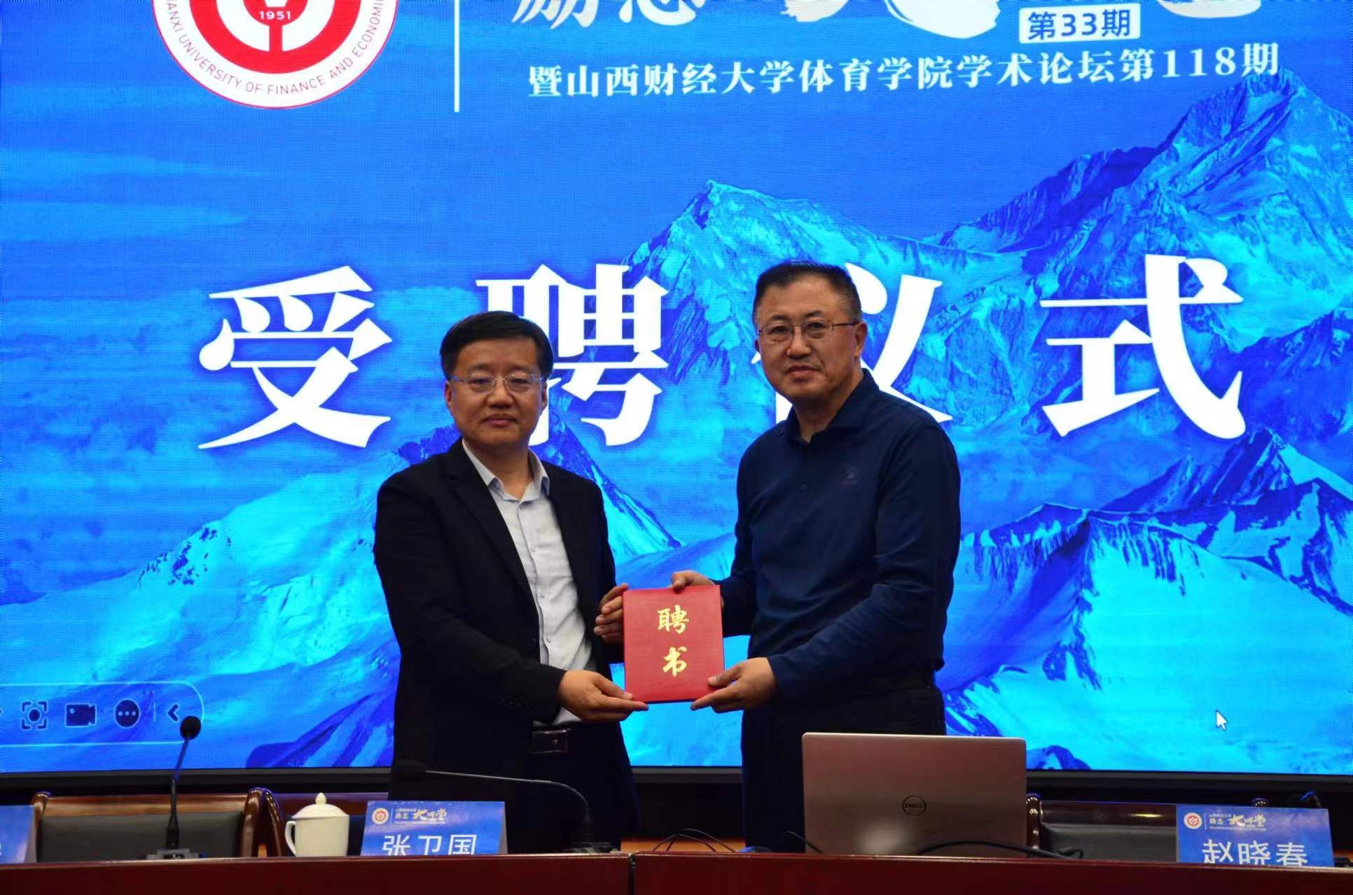讲座开始前,张卫国与赵晓春进行了座谈,并代表学校接收了赵晓春捐赠的著作《体育的中国化与现代化——以运动项目为中心》《何处是远方》《我的母亲》《半日闲斋古体诗存》等,共计23本,向赵晓春颁发了“7790cnm必发集团就业创业导师聘书”。就业创业中心主任、创业学院院长史成安代表学校与山西搏之美文化交流公司董事长王 刚签订了《山西搏之美文化交流有限公司、7790cnm必发集团创业学院战略合作协议》。