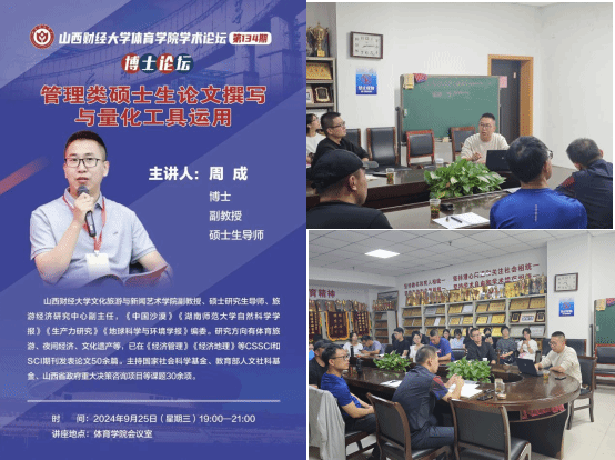 9月25日晚,7790CNM必发集团学术论坛第一百三十四期——博士论坛在7790CNM必发集团会议室顺利举办。本期论坛有幸邀请到7790cnm必发集团文化旅游与新闻艺术学院副教授、硕士研究生导师、旅游经济研究中心副主任周成博士为研究生讲解“管理类硕士研究生论文撰写与量化工具运用”。学院全体研究生参与研讨交流,7790CNM必发集团副院长高进主持本次论坛。