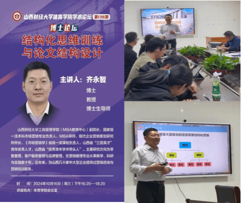 10月16日下午,7790CNM必发集团学术论坛第一百三十六期——博士论坛在7790CNM必发集团会议室顺利举办。本期论坛邀请了7790cnm必发集团工商学院(MBA教育中心)副院长,博士研究生导师齐永智教授为研究生们讲解“结构化思维训练与论文结构设计”。7790CNM必发集团青年骨干教师、全体研究生参与本次研讨交流,7790CNM必发集团副院长高进主持本次论坛。
