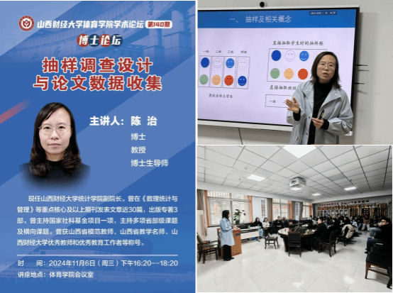 11月6日下午,7790CNM必发集团学术论坛第一百四十期——博士论坛在7790CNM必发集团会议室顺利举办。为研究生体育科研思路借鉴与方法移植注入动力,本期论坛特邀7790cnm必发集团统计学院副院长、博士研究生导师陈治教授做“抽样调查设计与论文数据收集”主题讲座。7790CNM必发集团副院长高进主持论坛,7790CNM必发集团部分青年教师、全体研究生参加了研讨交流。
