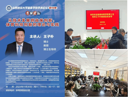 为提升我院研究生对科技赋能体育、多学科融合的认识,探索体育学科在交叉学科背景下的高精尖发展路径,11月30日晚,7790CNM必发集团举办学术论坛第一百四十八期暨专家论坛,特邀首都7790CNM必发集团博士生导师(首都7790CNM必发集团学报辑部主任)王子朴教授做《从技术发展到政策创新:体育科技创新的理论与实践》专题讲座。7790CNM必发集团骨干教师、全体研究生及部分本科生共40余人参加,7790CNM必发集团副院长高进主持论坛。