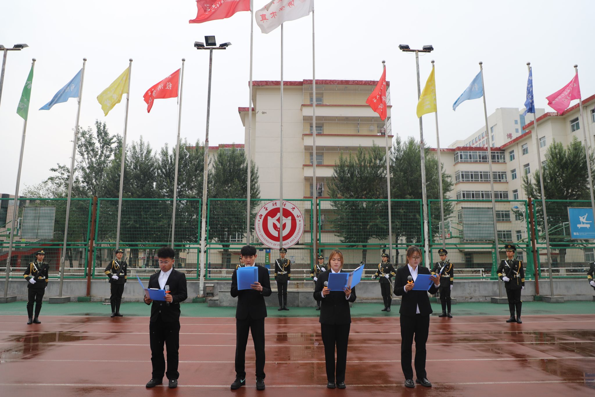 致敬祖国,祝福母校。早上7时整,升国旗仪式正式开始。校国旗班队员气宇轩昂、目光坚定、步伐铿锵、护旗入场。国歌奏响,鲜艳的五星红旗冉冉升起,全体师生庄严注目、高唱国歌、向国旗致敬。向伟大的祖国表达深切的热爱之情,向亲爱的母校送上诚挚的生日祝福。