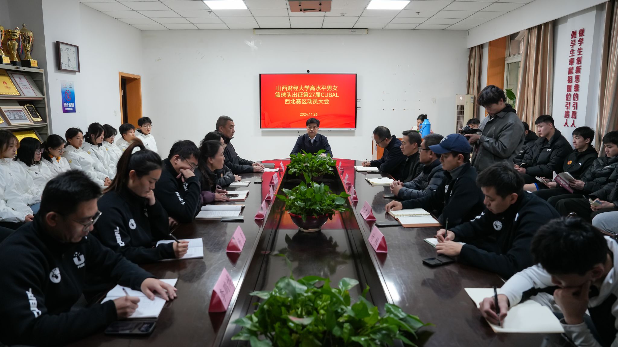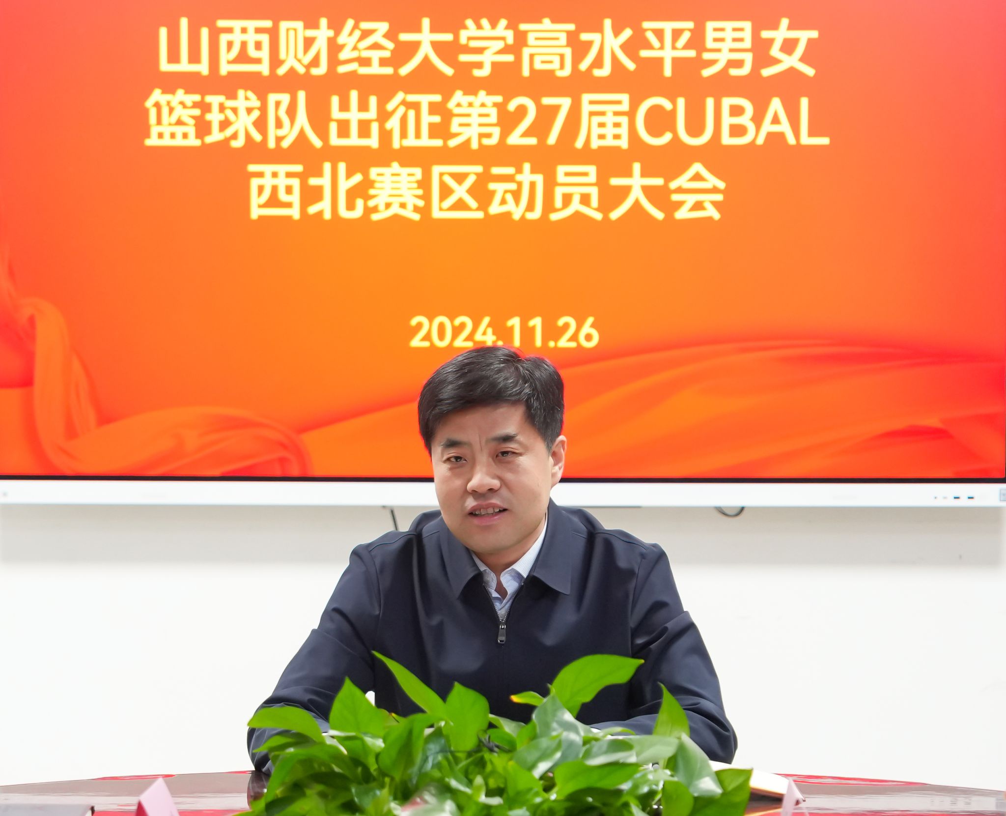 李向阳在讲话中充分肯定了我校篮球队伍历年来取得的突出成绩,他指出,我校高水平篮球队有着深厚的历史沿革和光辉的突出战绩,这支队伍薪火相传、代代相继,素质和面貌不逊于全国赛场上的任何队伍,这支闪亮的山财名片历久弥新。他对全体教练员和队员提出了殷切希望,一是轻装上阵,赛出水平。要正确对待比赛和成绩,展现平时训练水平,把失误降到最低。“轻装策马青云路,从此比赛御长风”。二是遵守规则,赛出风格。赛场上大家代表的是山财形象,要尊重对手,服从裁判,一切行动听指挥。“规矩方圆定乾坤,驰骋沙场百战威”。三是全力以赴,赛出佳绩。要发挥拼搏向上、不畏强敌的精神,时刻保持清醒的头脑和坚定的信心,提高团队意识和合作精神,全队一盘棋,打好整体仗。“乘风破浪击沧海,鲲鹏展翅九万里”。他要求,后勤人员做好保障工作,守护安全,精益求精,保障万无一失。最后,他期待全队人员共同努力,“壮士出征战鼓擂,载誉而来凯旋归!”向全省展示我们山财人的昂扬斗志、夺胜决心,以实际行动为学校、为本科教育教学审核评估争光添彩!