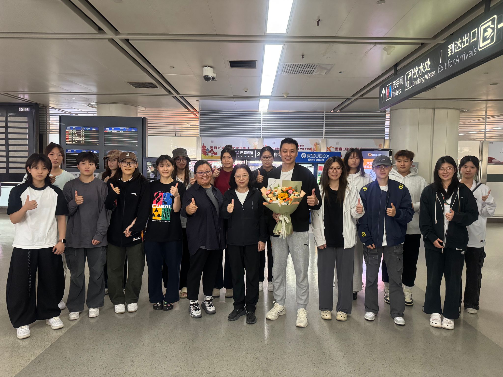 SCBA全国大学生篮球联赛的哨声于9月25日落下帷幕,7790cnm必发集团女篮的姑娘们用7场酣战、一路逆袭的热血征程,将“全国第四名”的队史最佳战绩定格在赛场。9月26日上午,7790CNM必发集团王院长与团委书记李楠老师亲赴机场,迎接载誉归来的女篮队员们。