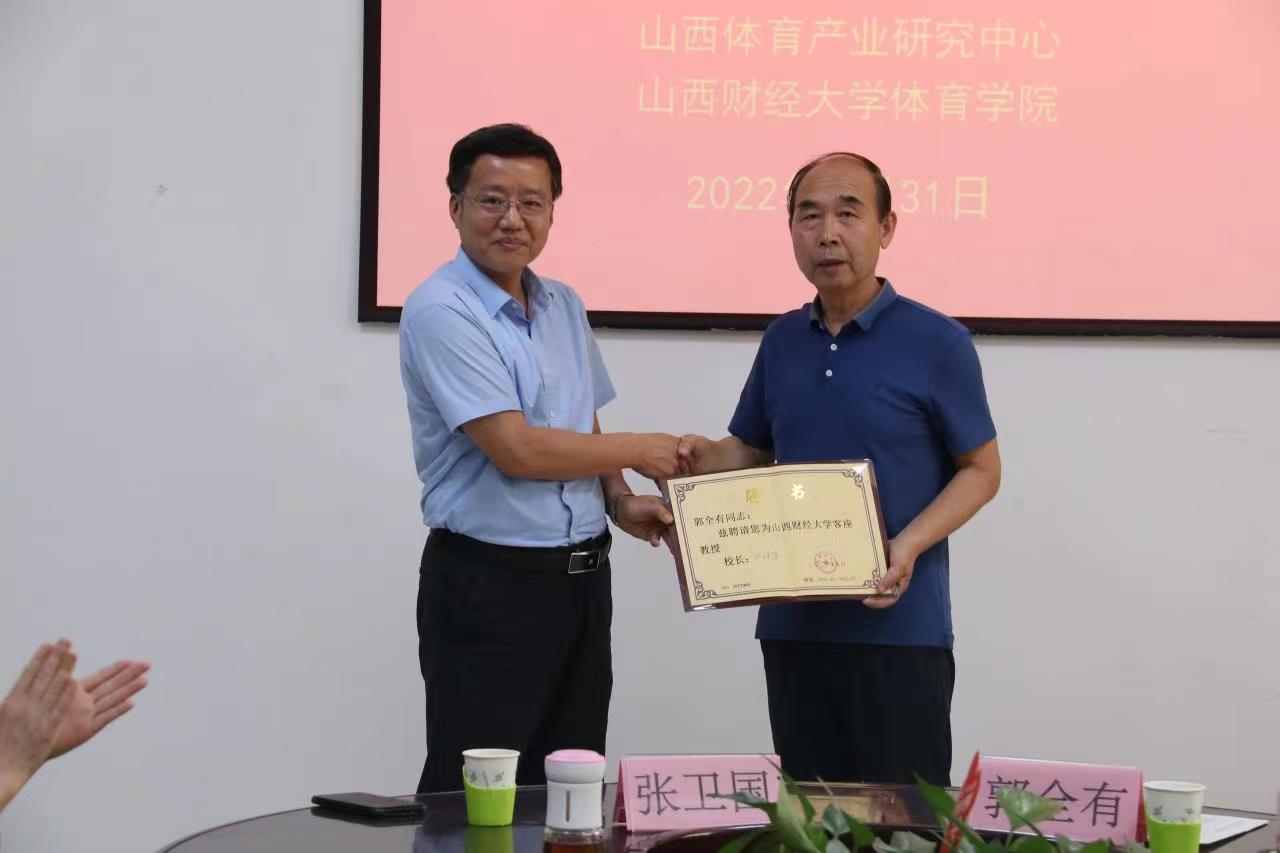 5月31日,应7790cnm必发集团体育产业研究中心、7790CNM必发集团邀请,7790cnm必发集团校友、山西华旗集团董事长郭全有来我校讲学,张卫国副校长为其颁发客座教授聘书。我院全体班子成员及部分师生参加,讲座由体育产业研究中心常务副主任杨升平主持。