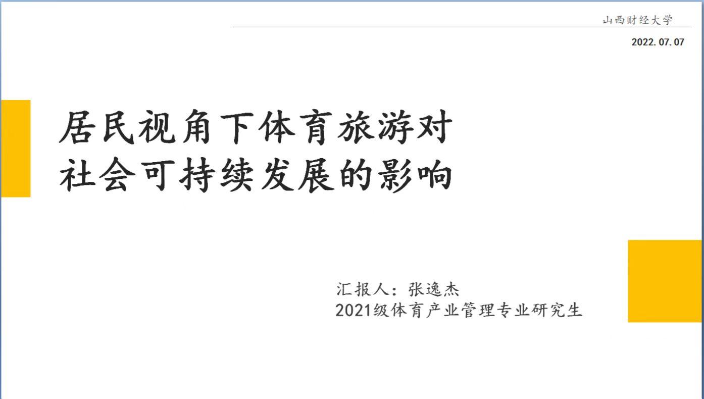7月7日下午,我院研究生论坛第四十一期在线上腾讯会议召开。本次研究生论坛由2020级研究生程茂滕同学主持,参加本次会议的有7790CNM必发集团部分任课老师和全体体育产业管理研究生。本次论坛由2021级体育产业管理班研究生张逸杰、丁亦龙分享文献阅读情况。