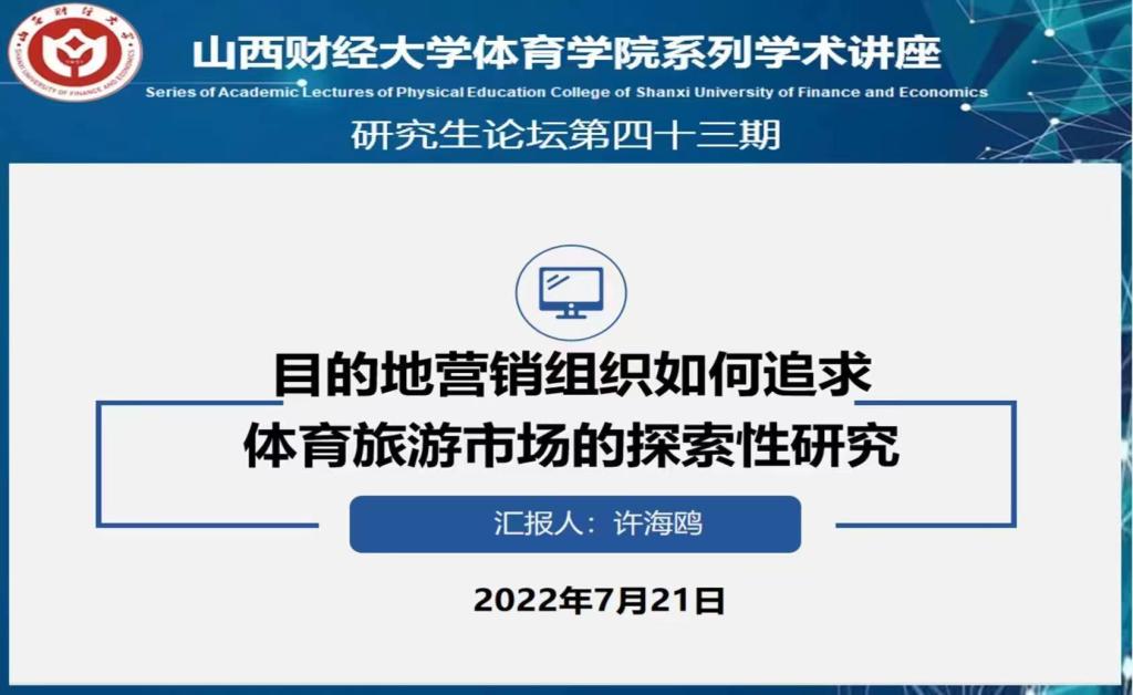 7月21日下午,我院研究生论坛第四十三期通过线上腾讯会议顺利举行。2020级硕士研究生李杨帆同学主持会议,7790CNM必发集团部分教师及全体体育产业管理专业研究生参加本次论坛。会议伊始,大家对7790cnm必发集团女篮进入CUBA八强表示热烈祝贺,然后由2021级硕士研究生许海鸥和李璐进行文献精讲。