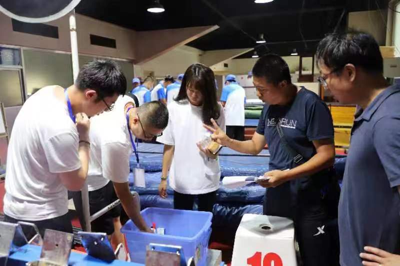 裁判组-----赛会顺利开展离不开场内裁判组的有序公正执裁,裁判组志愿者们分别在助理发令员、检查裁判员、赛后控制中心裁判员、场地器材裁判员等岗位分工合作,帮助主裁判和裁判员合力完成场内和赛后的执裁工作。21级体育经济与管理2班郑杨帆同学讲到:“裁判培训结束后我们分组到场地进行了实践,虽然只是个辅助工作,但是在过程中我深刻地感受到了裁判长的认真与负责,大家积极配合,一切都很顺利。”