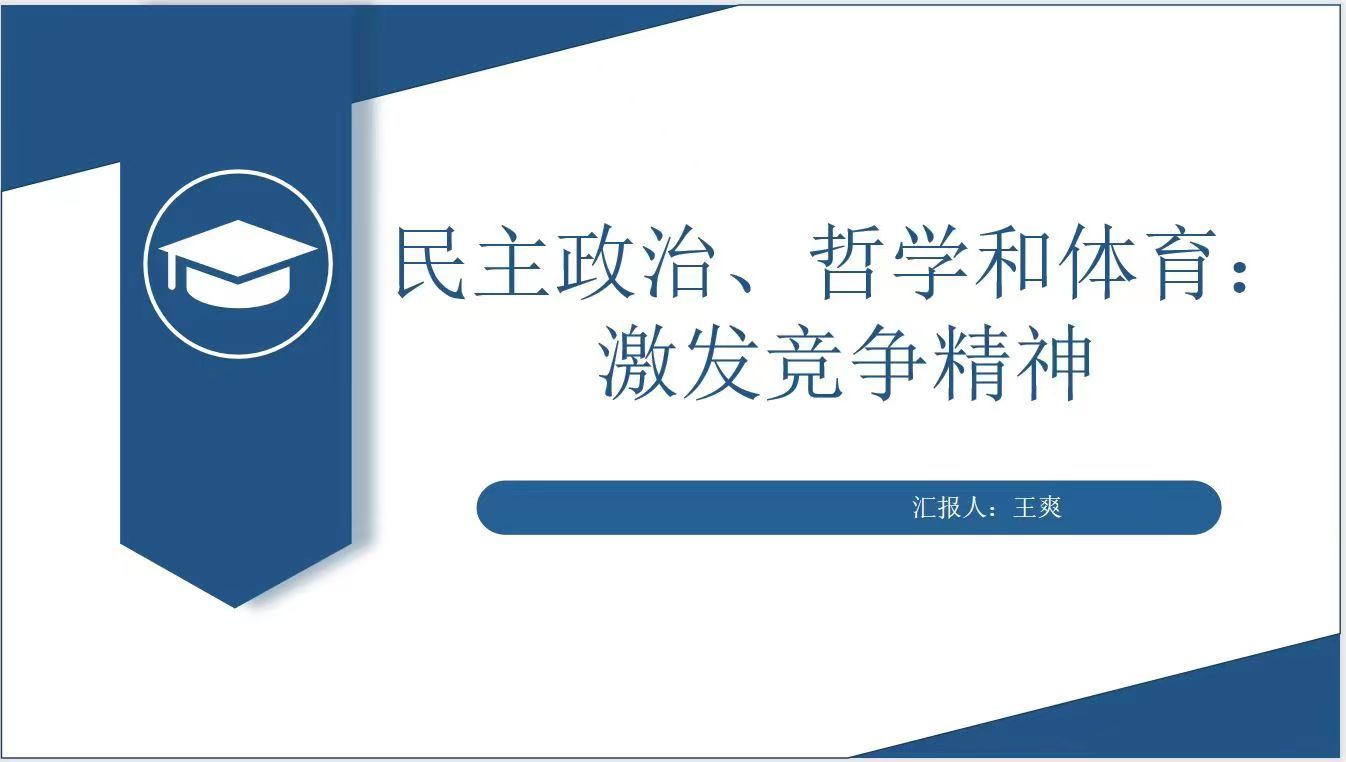 王爽的主题为“民主政治、哲学、体育:激发竞争精神”,主讲文章由捷克共和国布拉格查尔斯大学体育教育和7790CNM必发集团Breana McCoy和Irena Martínková学者联合发表的Democracy, Philosophy and Sport: Animating the Agonistic Spirit,来自Journal of the Philosophy of Sport期刊,文章通过探索Polemos和Agon之间的关系以及这种关系对哲学、民主政治和体育等不同领域的影响,讨论哲学、民主政治和体育不同竞争形式的社会实践提供了个体有机会脱颖而出、证明自己和获得他人认可的环境,旨在帮助我们参与诸如体育等激烈的社会实践时如何利益最大化。