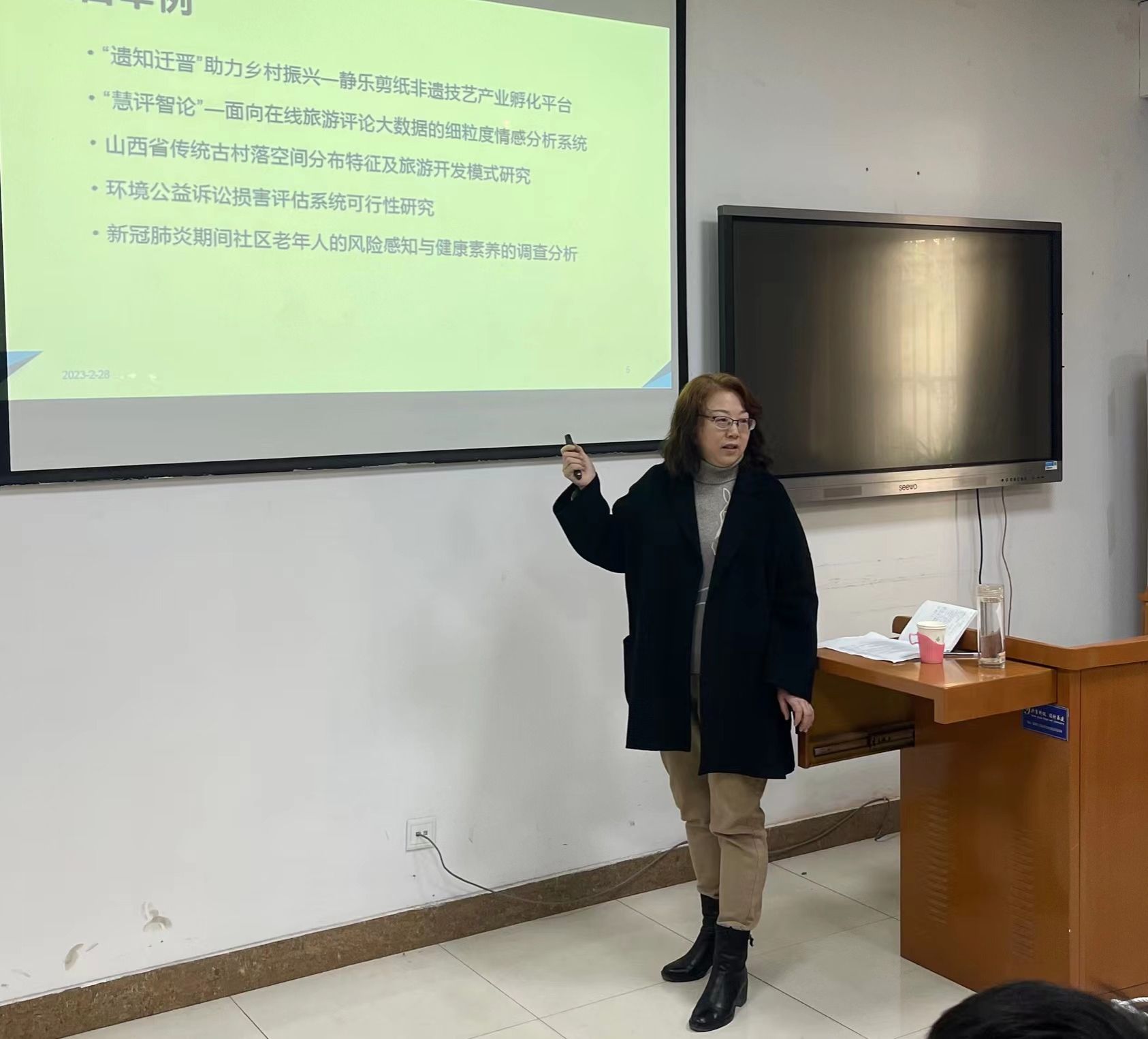 王树宏教授从国家战略、高校发展、专业建设以及人才培养等方面,阐述了大创项目的重要意义,并用我校及我院历年“双创”取得的好成绩鼓励参加辅导的同学们。王树宏教授结合专业及她指导学生“双创”的经验,重点对选题及申报书的撰写为同学们进行了耐心的讲解。她通过剖析优秀大创申报书案例,向大家分享了大创项目申报书撰写的思考逻辑、文字表达以及写作的重点、难点。