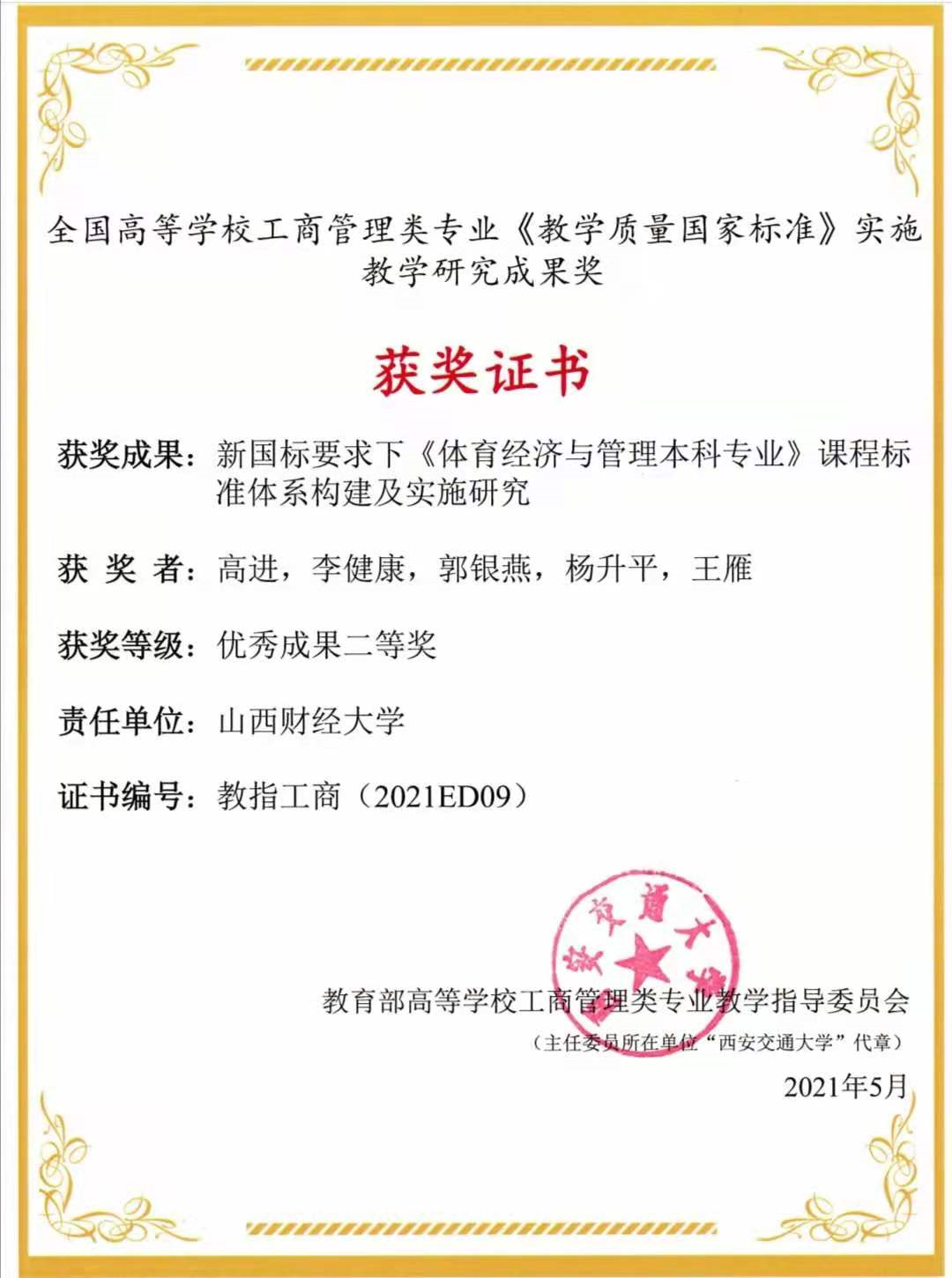 【喜报】祝贺我院高进老师获得全国高等学校工商管理类专业《教学质量国家标准》实施教学研究成果奖。