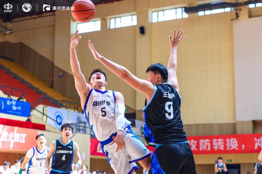 男篮进行十六进八的晋级赛,山西财大三分险胜郑州大学,与西安交大、山西大学、中北大学、河南大学、西北工大、太原理工、石河子大学同步晋级西北八强。明日将迎来八进四争夺战!